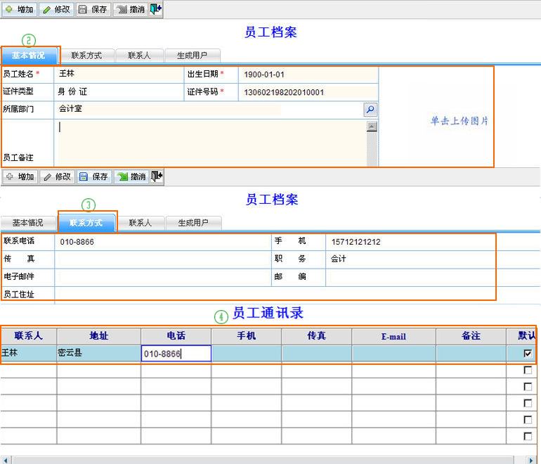 按照管理需要对分店进行设置员工档案,方便统一和高效管理,生成用户登录使用进销财操作相关业务。在新增员工前,先设置好部门。 |