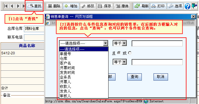 (2)删除销售单:您查找到要删除的销售单后,在菜单栏点击“删除”。打开图示帮助 视频演示