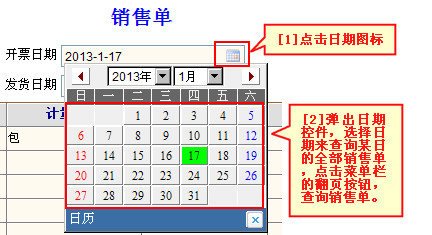 (2)您也可以使用日期控件按开票日期查询,点击开票日期后面日期图标。打开图示帮助