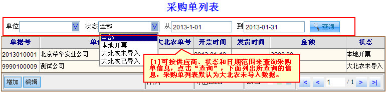 您可以在采购单列表界面,按照多种查询条件,查询到相应的采购单信息。打开图示帮助 视频演示