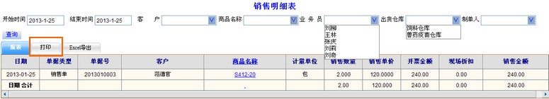 2 打印销售明细表: