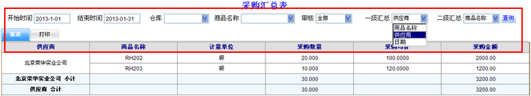 采购报表——采购汇总表