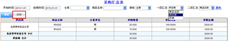 2 打印采购汇总表: