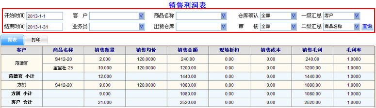 2 打印销售利润表: